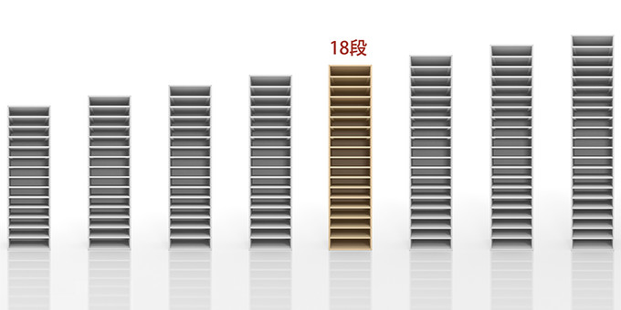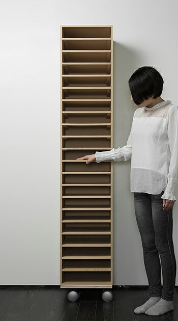 <主な仕様>素材:[外箱]針葉樹系MDF12t、[棚板(固定棚)]針葉樹系MDF12t、[棚板(可動棚)]針葉樹系MDF4t(正面端部は天然木)仕上げ:素地仕上げ(無塗装)段数:18段サイズ:幅356×奥行358×高さ1511棚内部有効寸法:w=332、d=351、h=70.5(最上段のみh=72.5)製造:日本製備考:セミオーダー品につきお届けまで約2週間かかります。