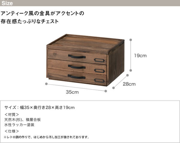 ■サイズ:幅35×奥行き28×高さ19cm ■材質 天然木(杉)、積層合板 水性ラッカー塗装 ※レトロ調の作りで、はじめから汚し加工が施されております。