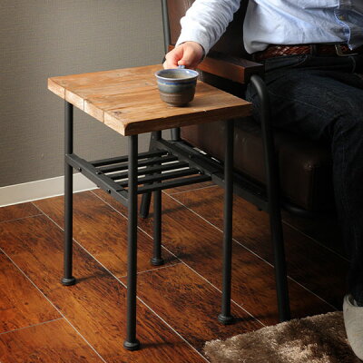 杉古材の家具に癒される♪ 木製 サイドテーブル 【送料無料】 おしゃれ アンティーク 北欧 木製 アンティーク調 スチール マガジンラック付き ソファー用 テーブル ミニテーブル カントリー調