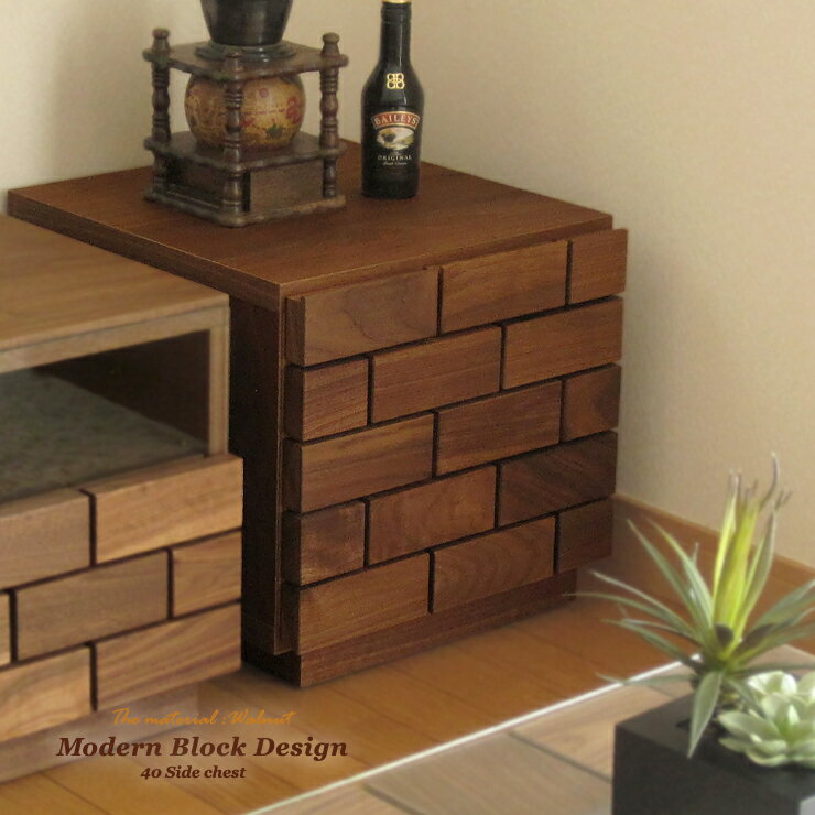 開梱設置無料 *3年保証付* 国産 日本製 レンガ 調 ウォールナット 無垢 40センチ 幅 サイドチェスト コンパクト サイドテーブル モダン ミニ 完成品 リビング収納 天然木 ブロック ブラウン 茶 ウォルナット 40 40cm ラグジュアリー おしゃれ 収納 人気 送料無料 05P03Dec16